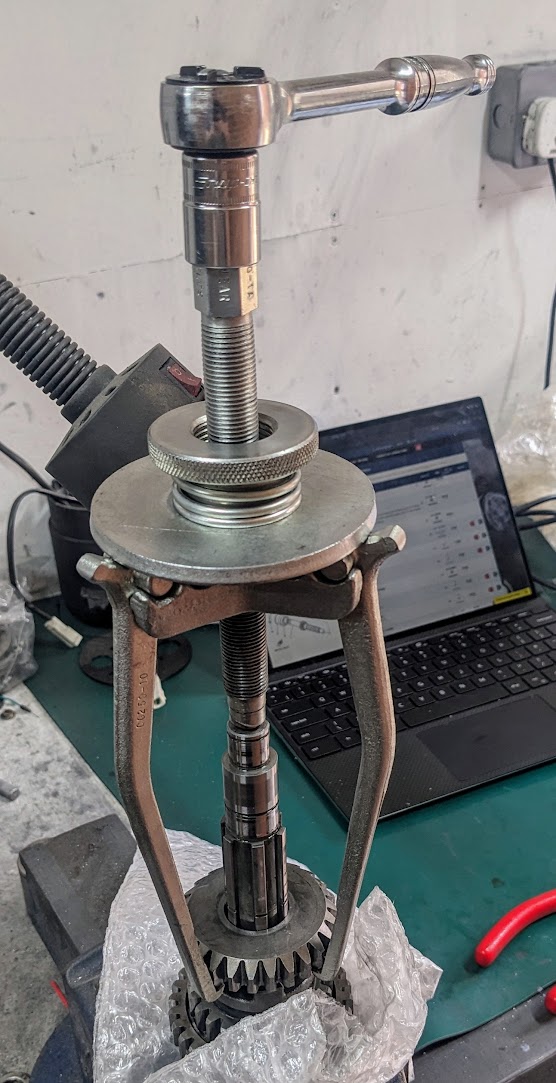 This was not coming off and the prognosis wasn't good. Rough running third gear with swarf coming out of it.